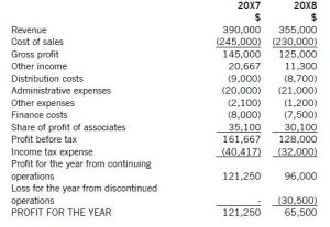 The final item in the example above represents a loss made in a section of a business which is discontinued. This separate disclosure is required by accounting standards. Additionally, IAS1 also requires a short statement of comprehensive income, which shows unrealised gains (like unrealised asset revaluations, or currency gains/loses on translation). I don’t include it here, but it is usually no more than a few lines.
